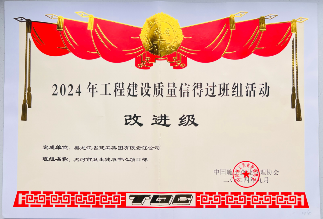 • 黑河市衛(wèi)生健康中心項(xiàng)目部2024年工程建設(shè)質(zhì)量信得過(guò)班組活動(dòng)改進(jìn)級(jí)